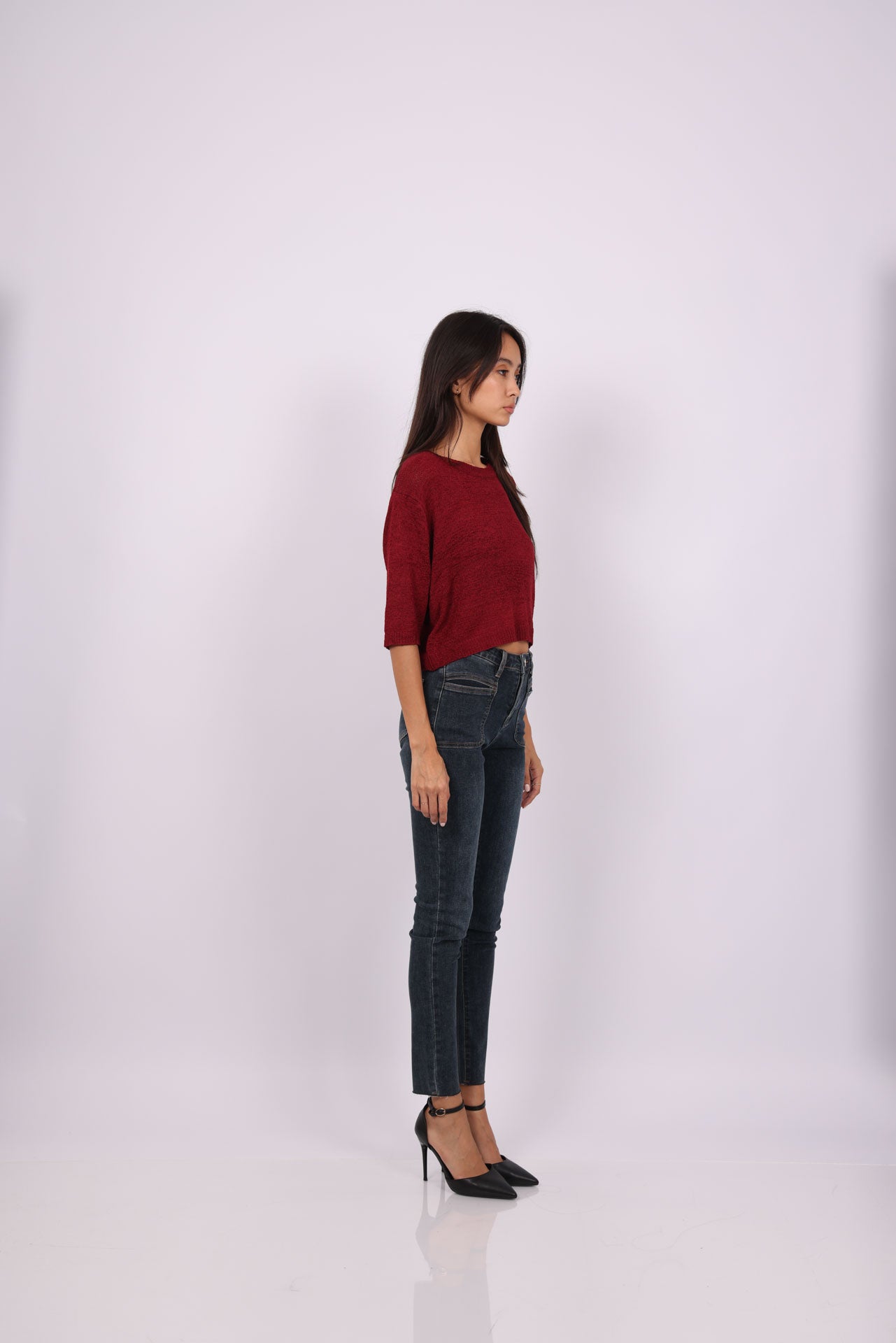 DARK WASH HIGH-RISE SKINNY JEANS WITH FRONT PATCH POCKETS