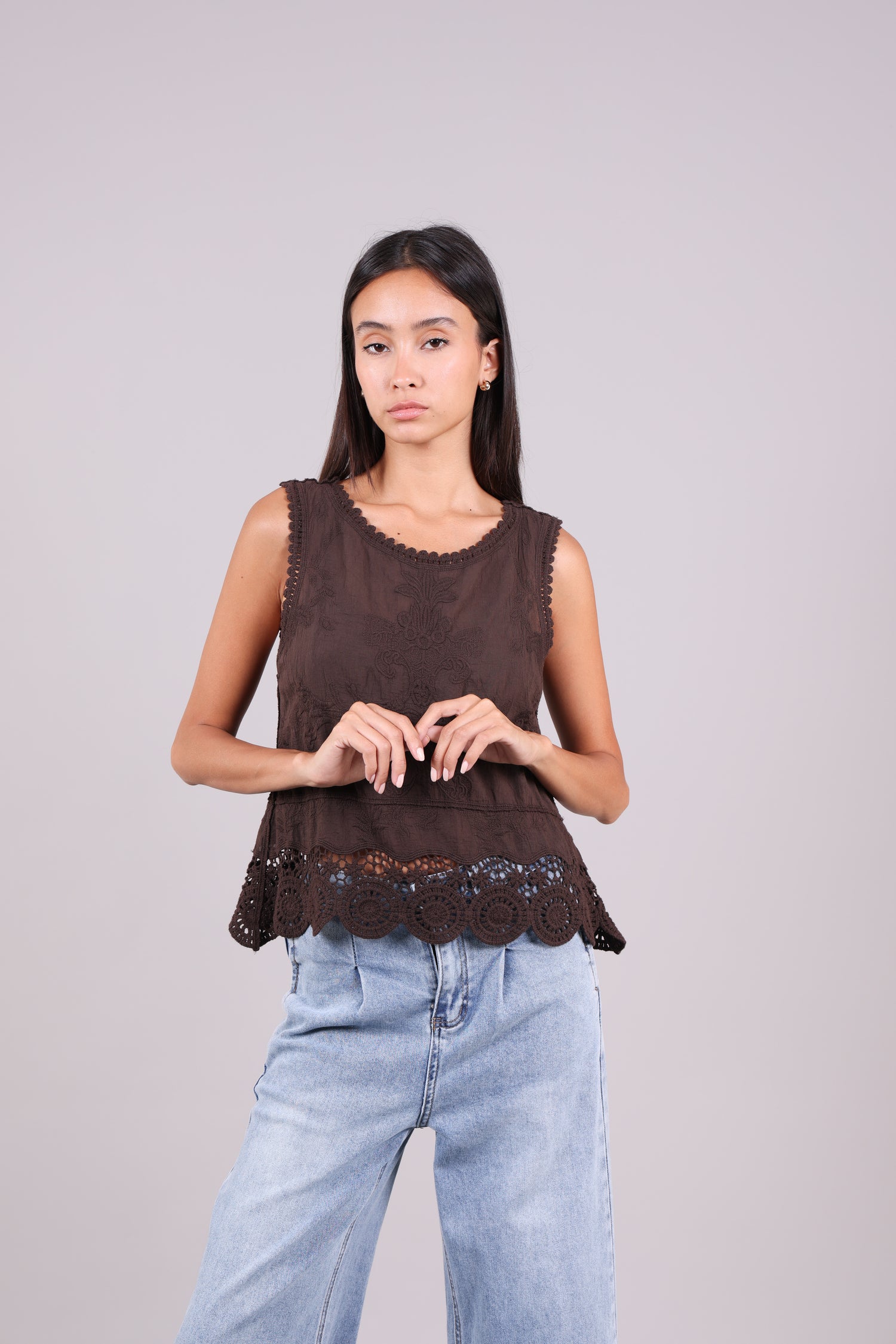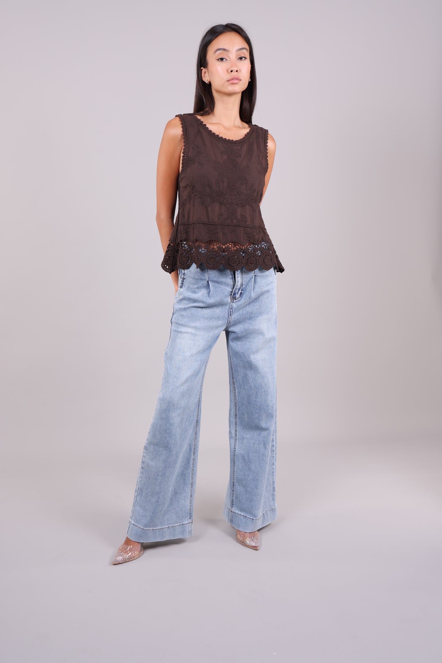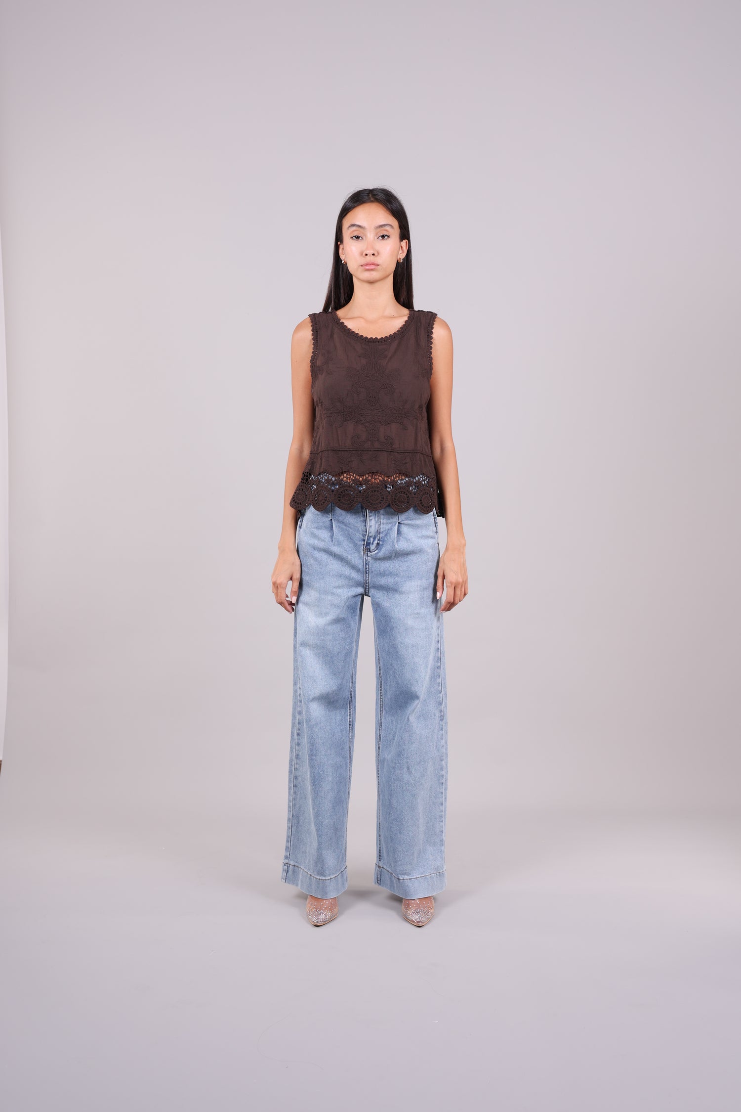 EMROIDERED CROCHET HEM SLEEVELESS TOP