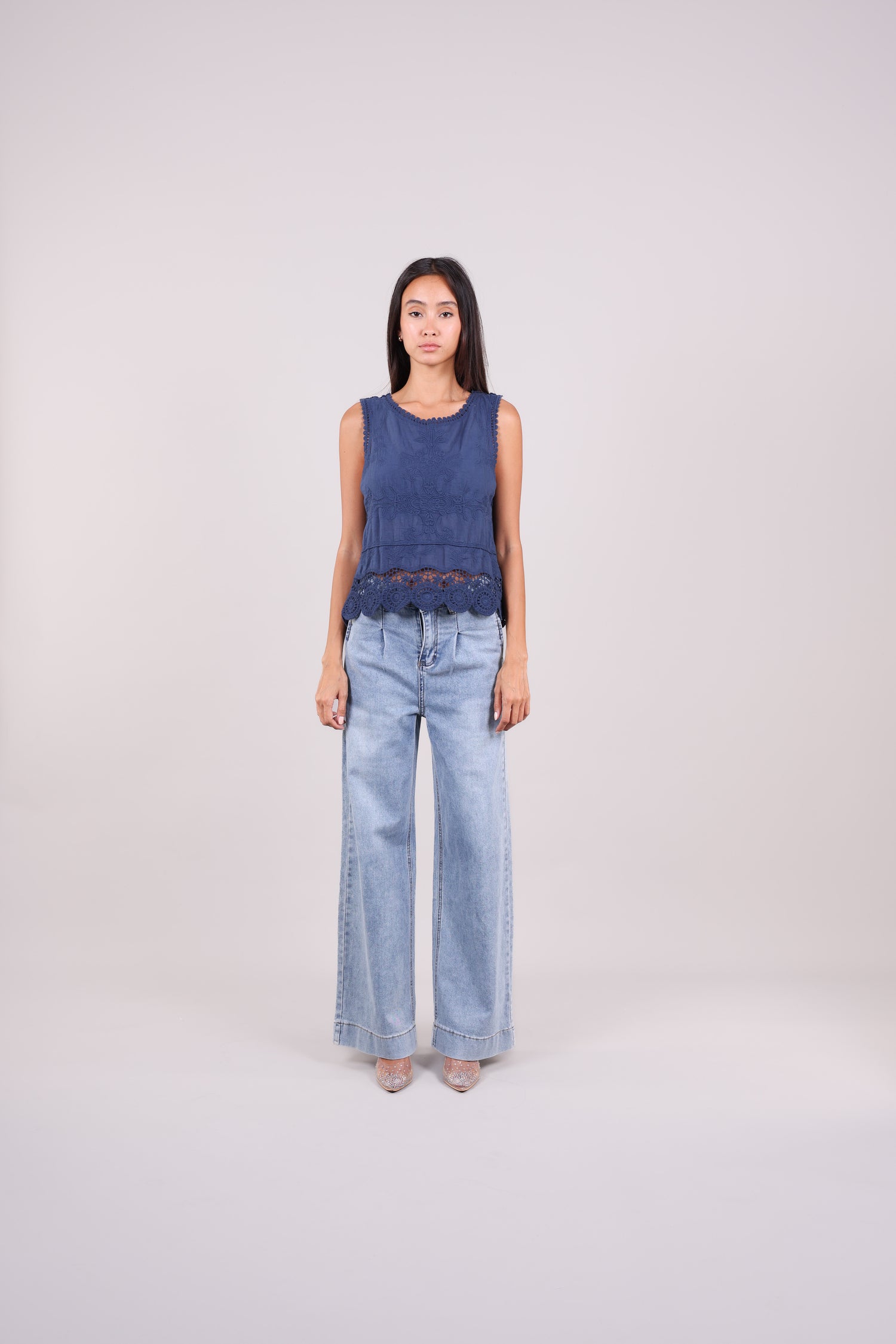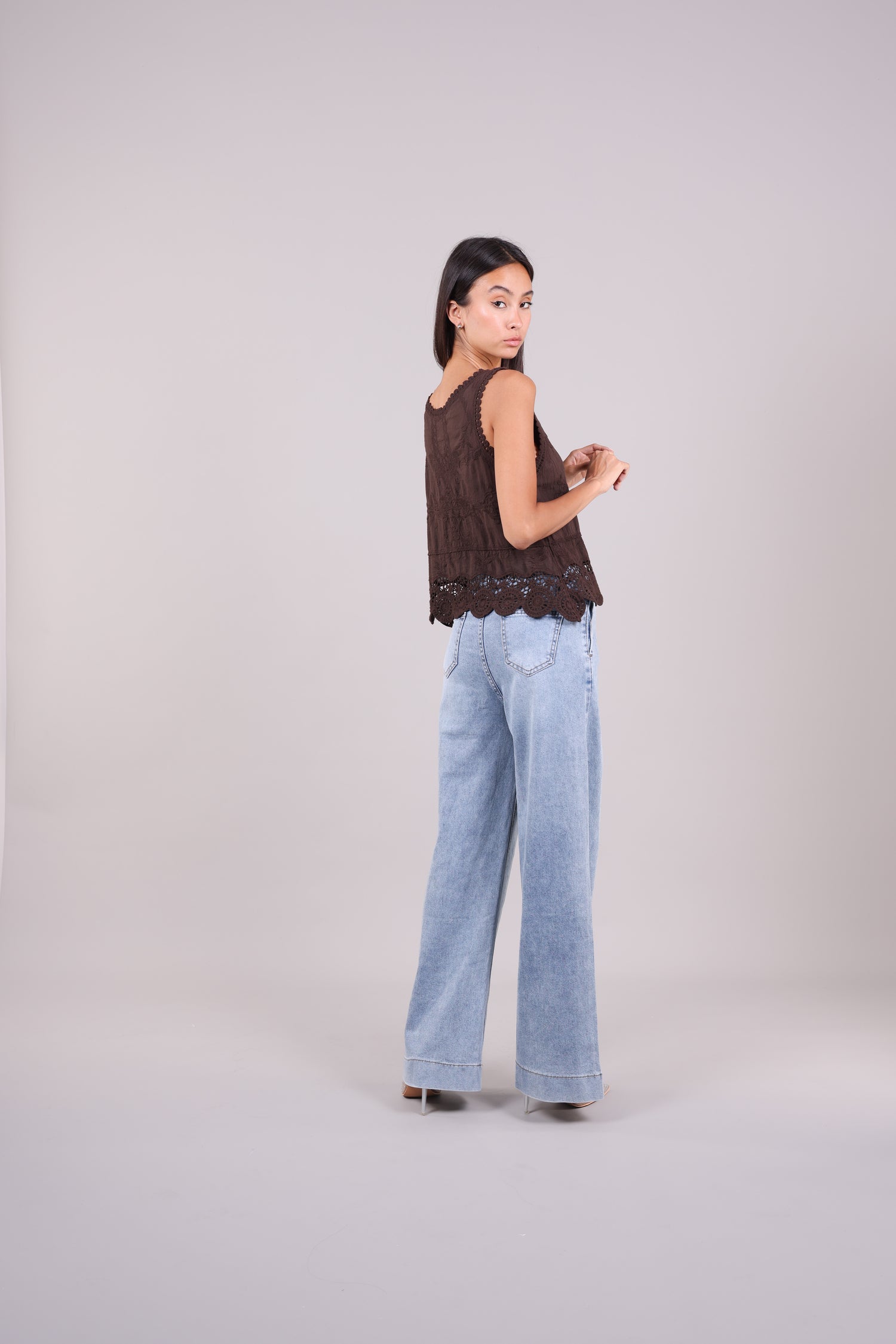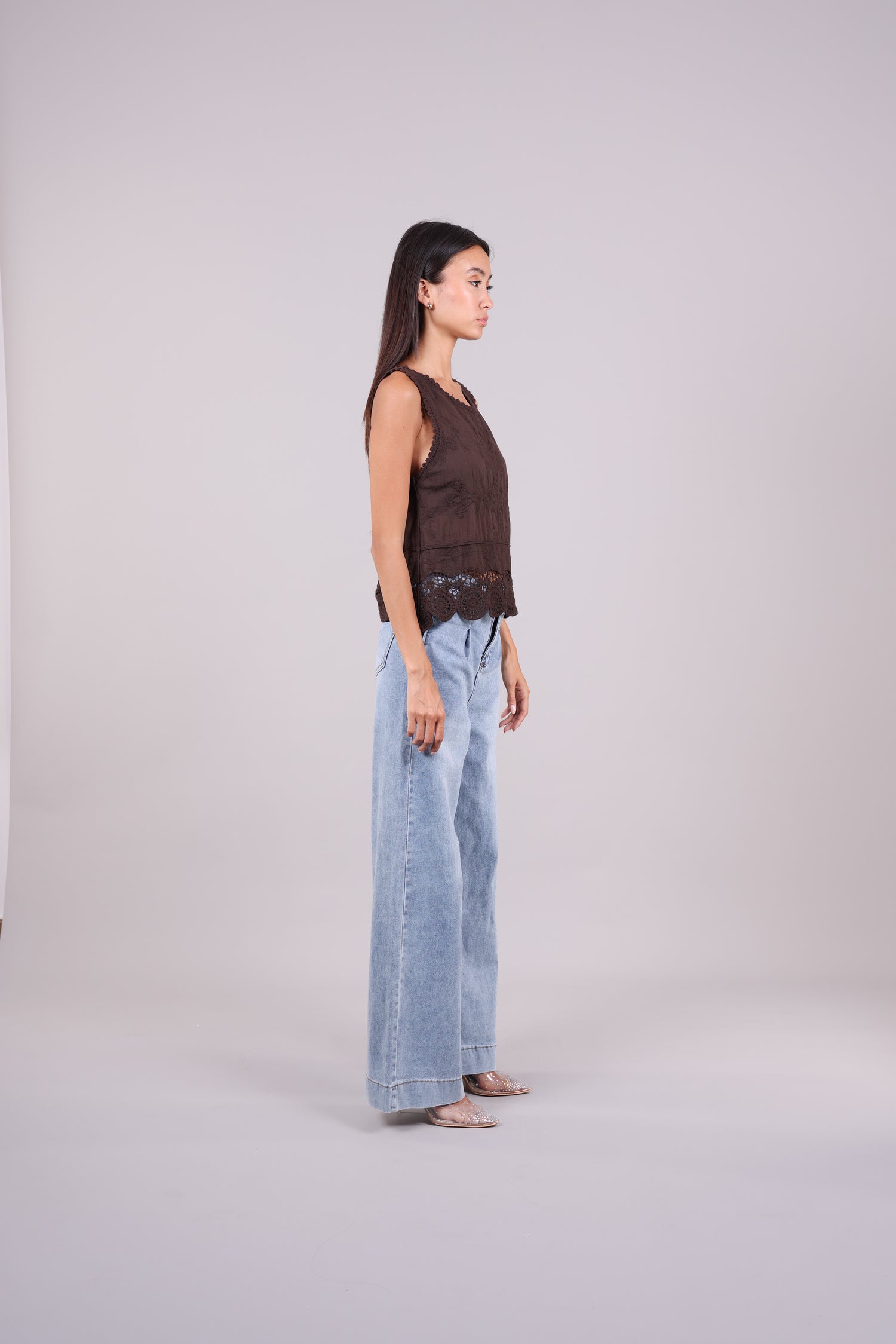 EMROIDERED CROCHET HEM SLEEVELESS TOP
