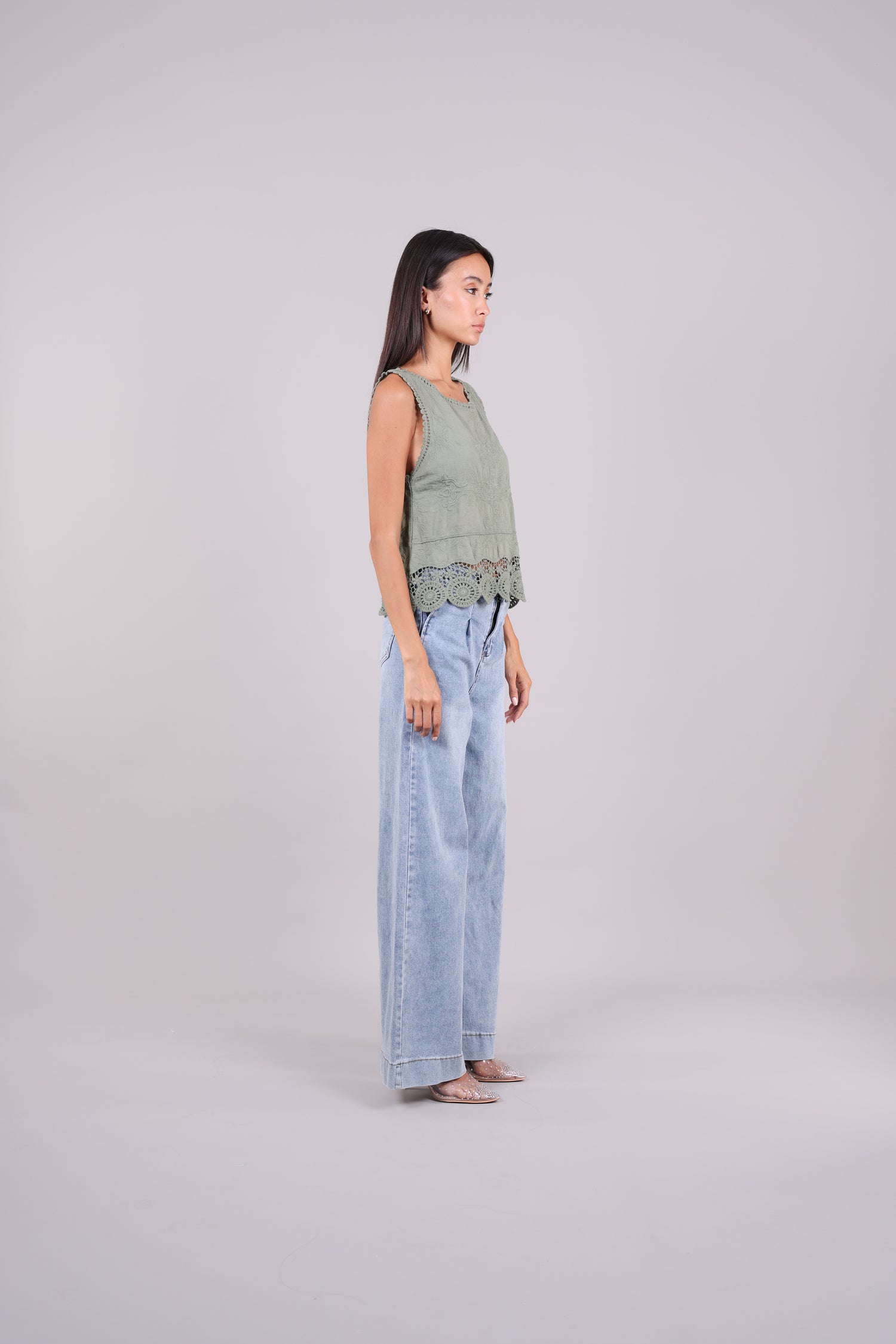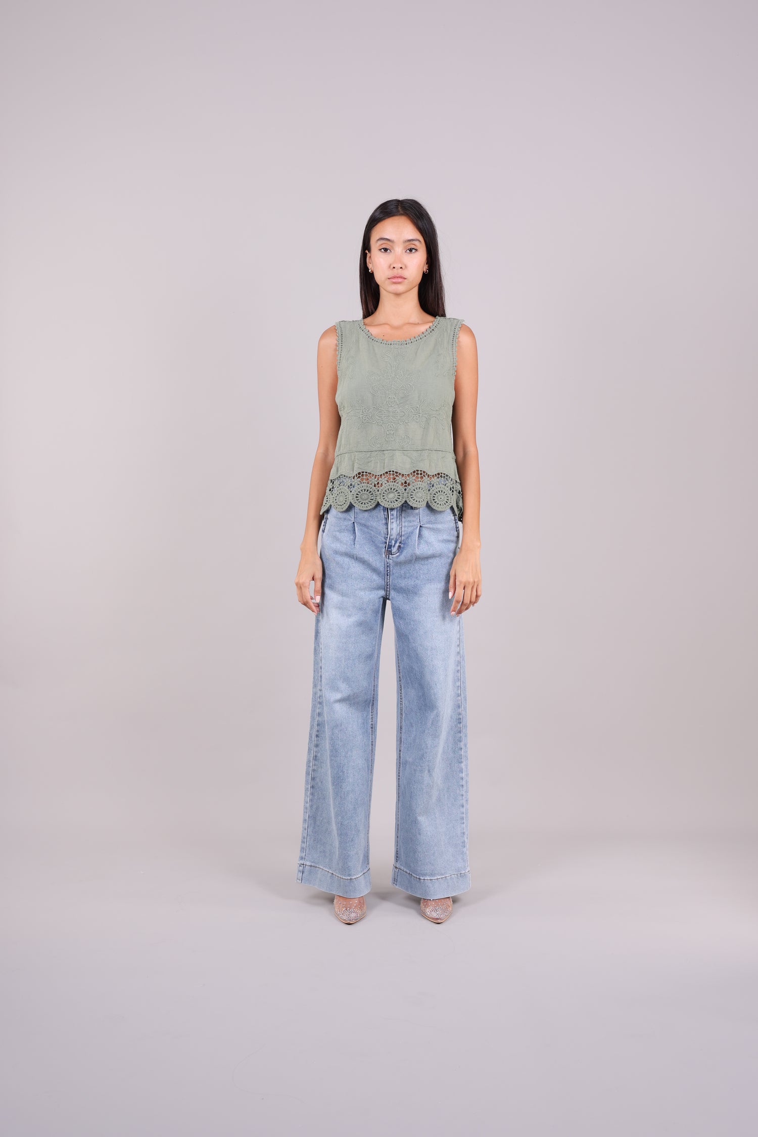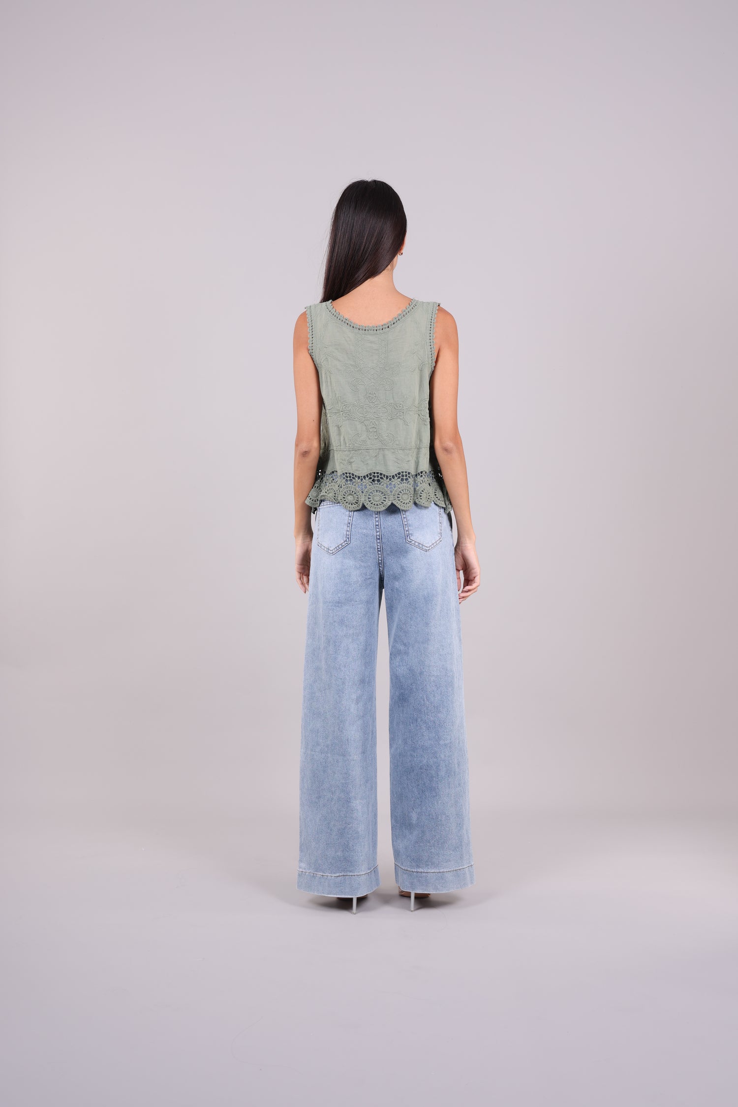 EMROIDERED CROCHET HEM SLEEVELESS TOP