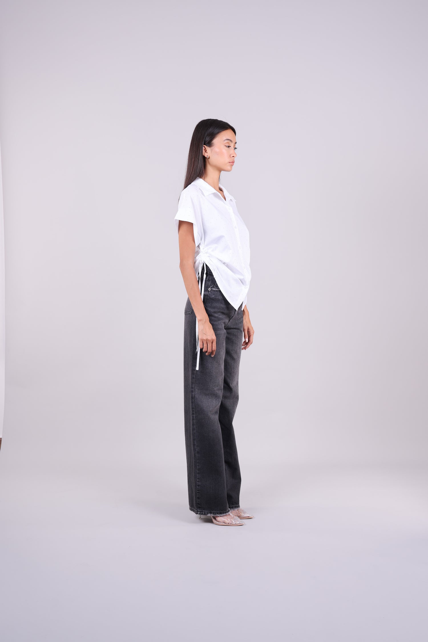 POLKA DOT DRAWSTRING SIDE SHIRT