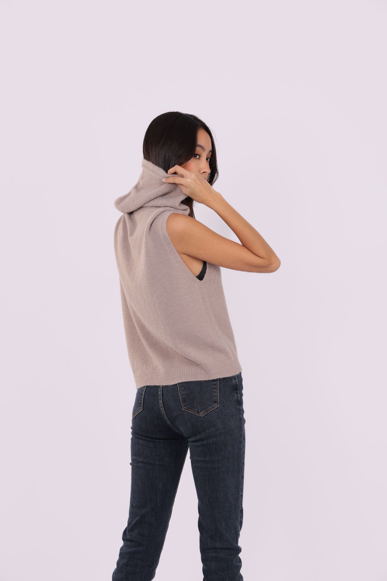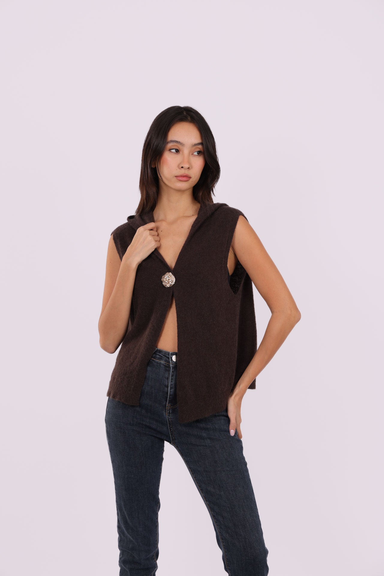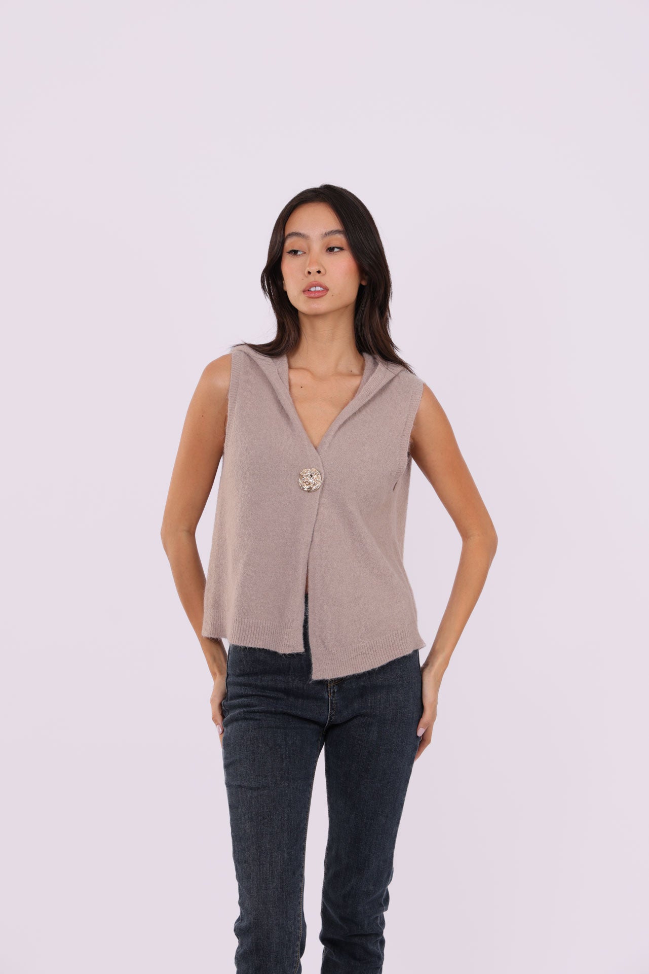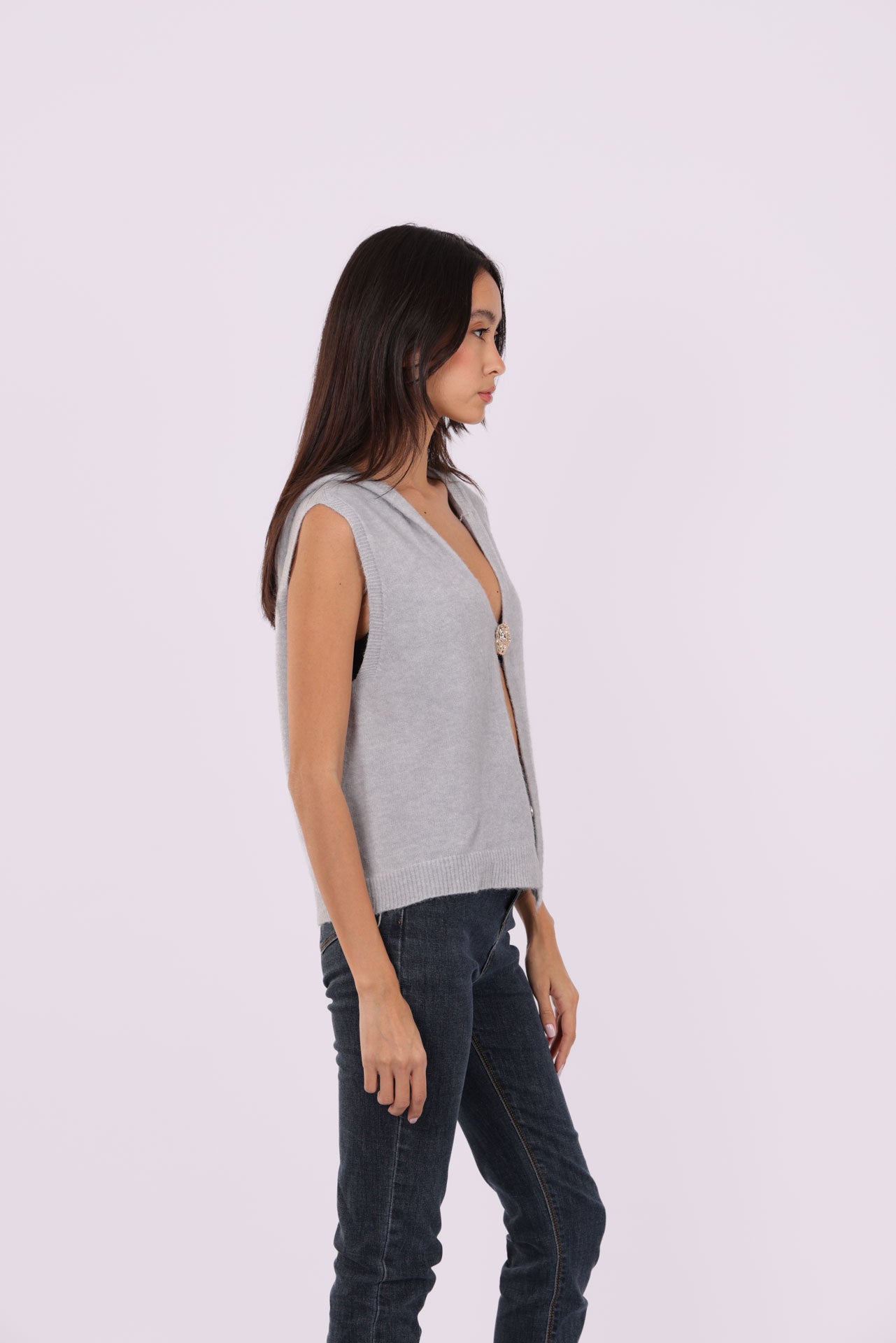 SLEEVELESS DEEP-V KNIT WITH JEWEL CLASP